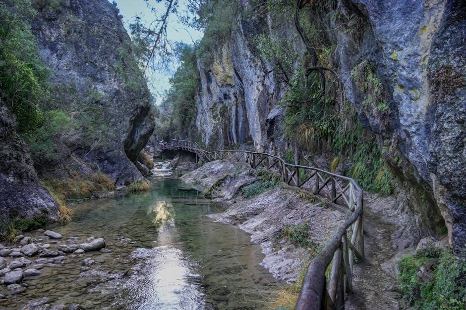 PDF resources emphasize carrying sufficient water, or a reliable filtration/purification system. Always verify water source status before relying on it, as conditions can change. Prioritize preparedness to ensure a safe and enjoyable trail experience.